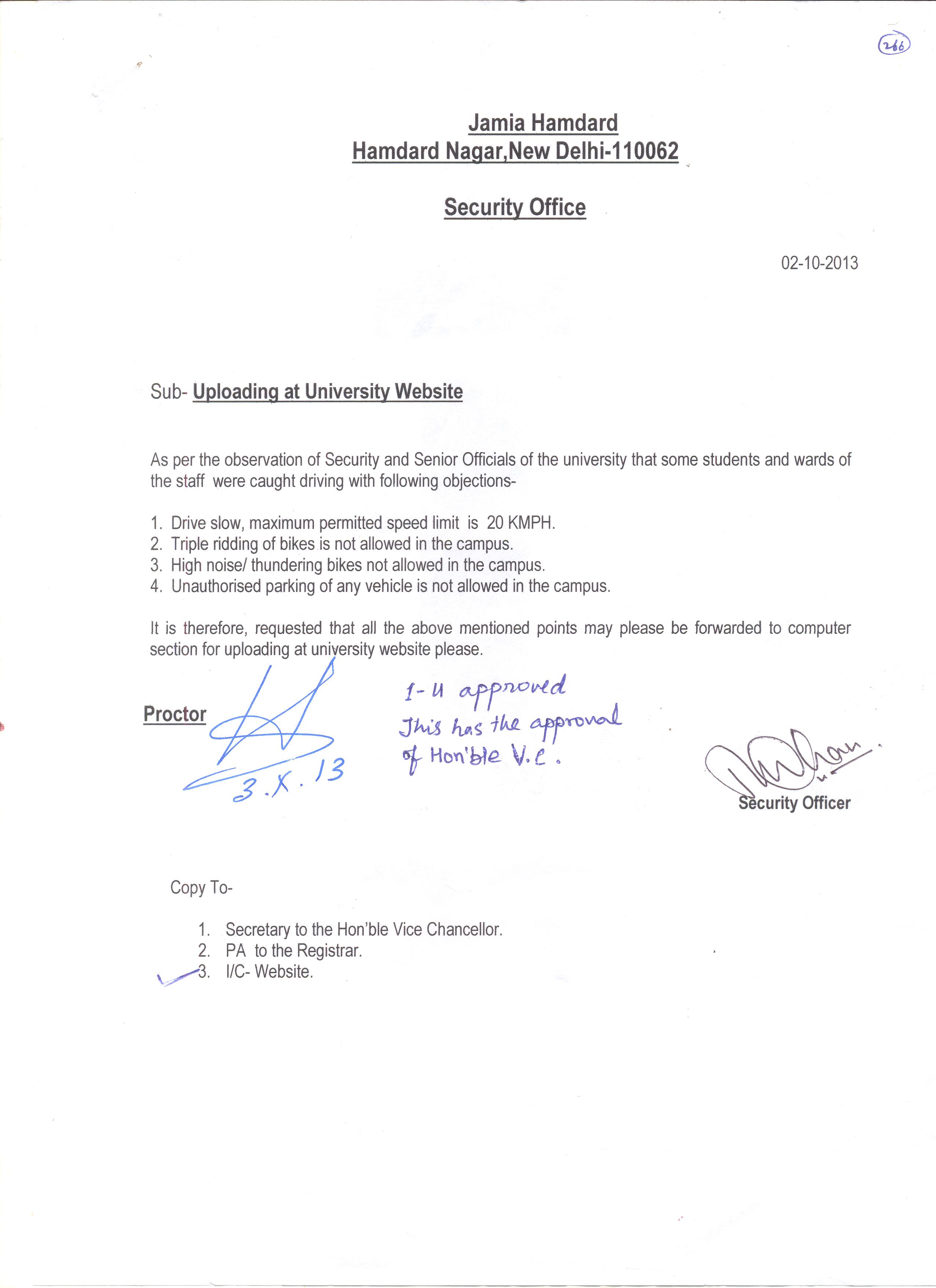 Notice regarding Speed Limit in University Campus