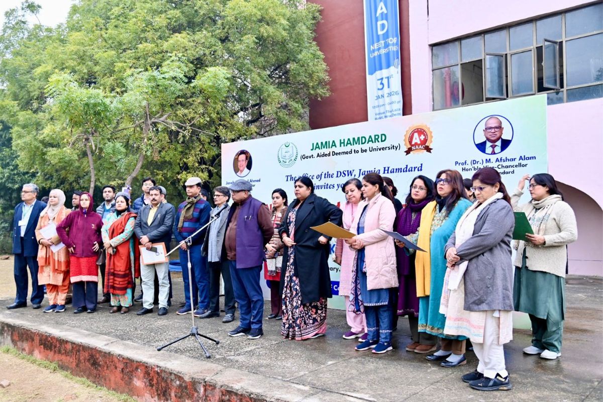Jamia Hamdard celebrated the 77th Republic Day with great enthusiasm and patriotic fervor. The celebration commenced with an impressive parade by the NCC Cadets, NSS Volunteers and the University Guards, symbolizing discipline, unity and dedication to the nation.