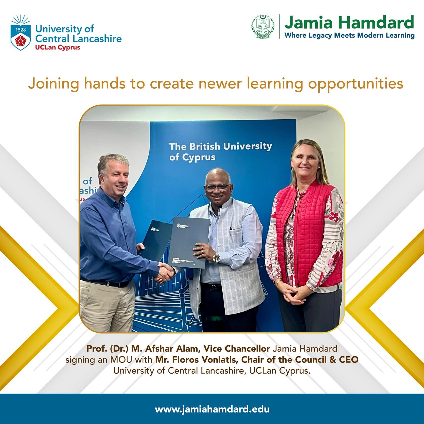 Jamia Hamdard signs an MOU with the University of Central Lancashire, Cyprus, paving the way for collaborative research, academic exchange, and enhanced learning opportunities.