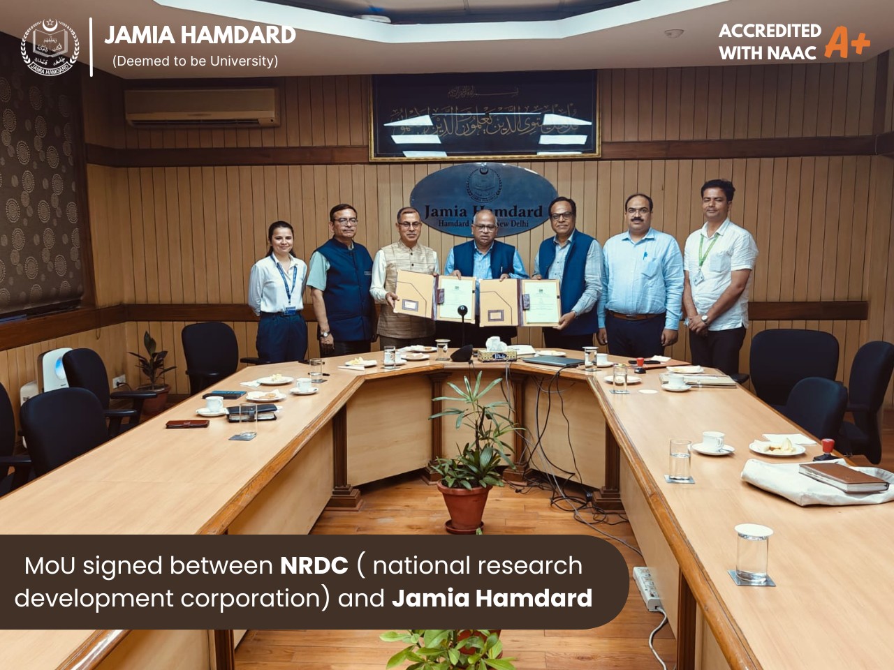 Glimpse of the MoU signed between NRDC ( national research development corporation) and Jamia Hamdard.