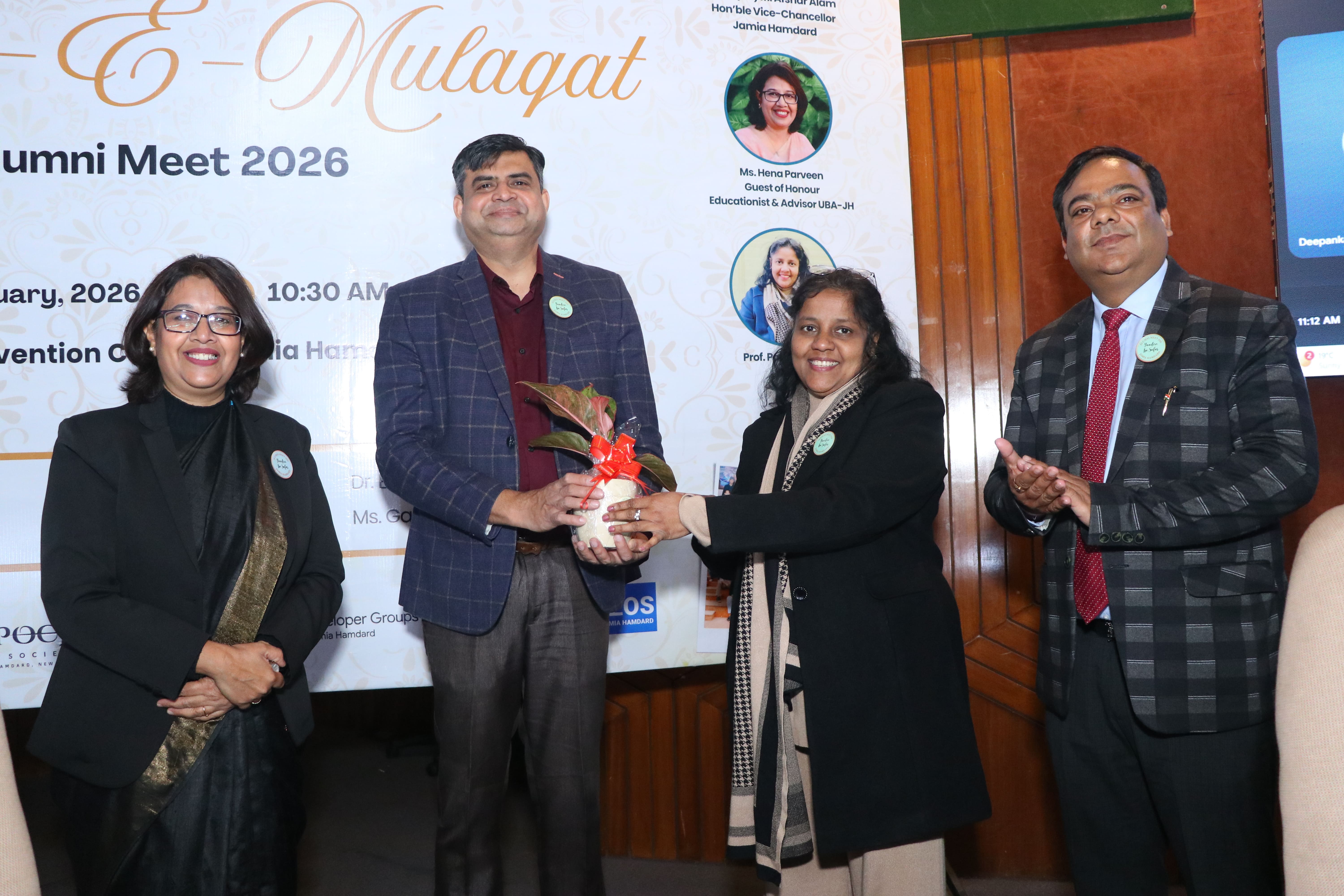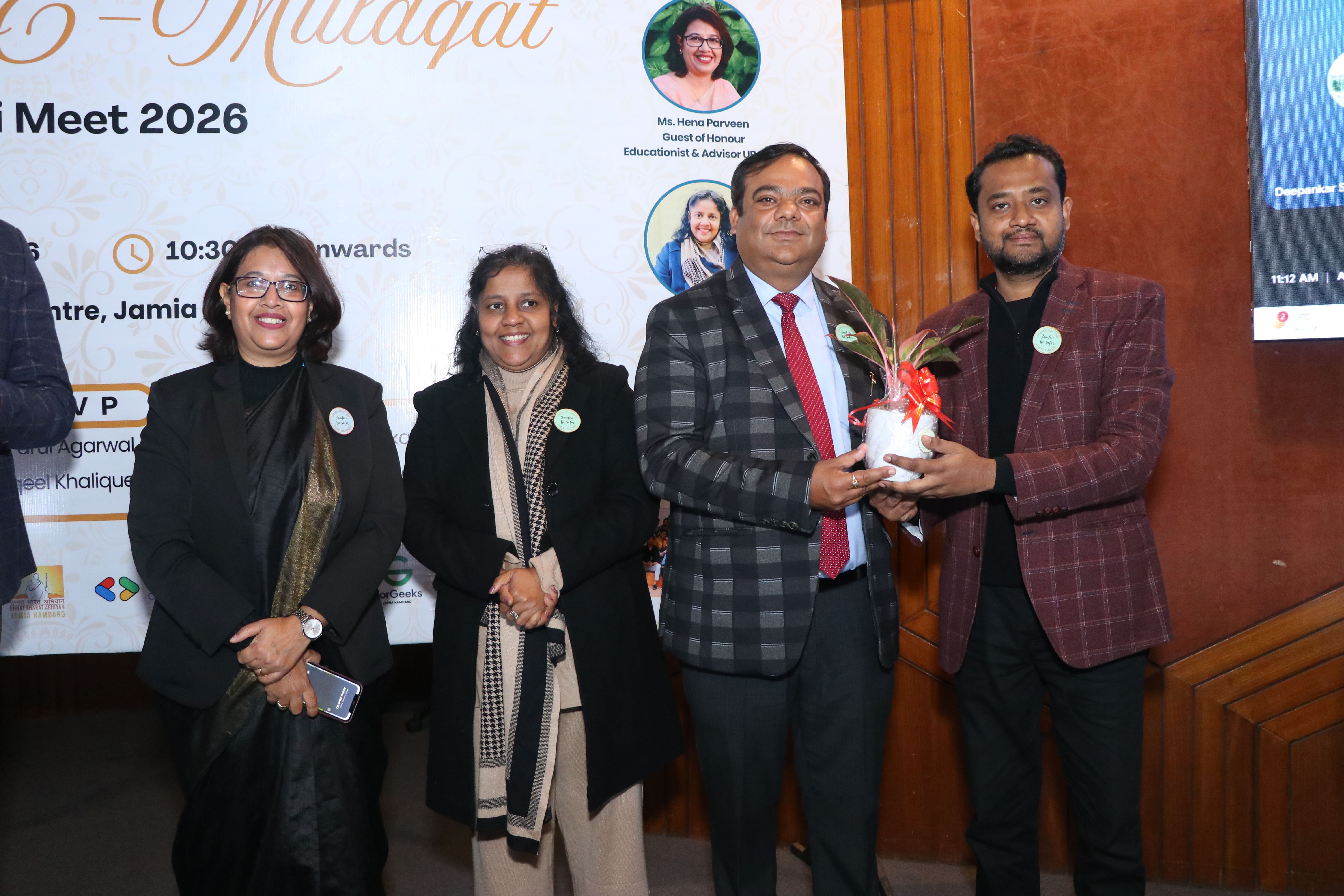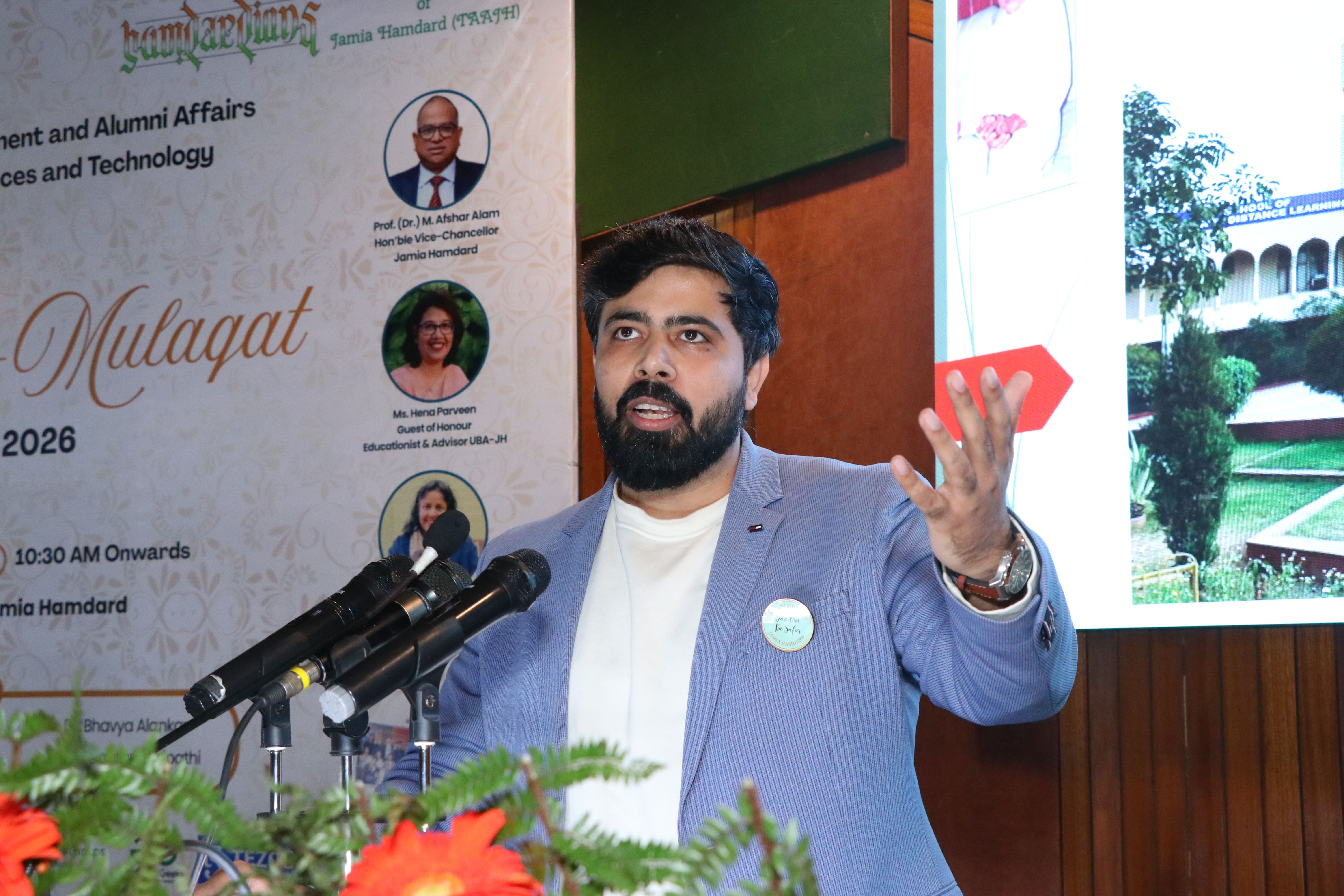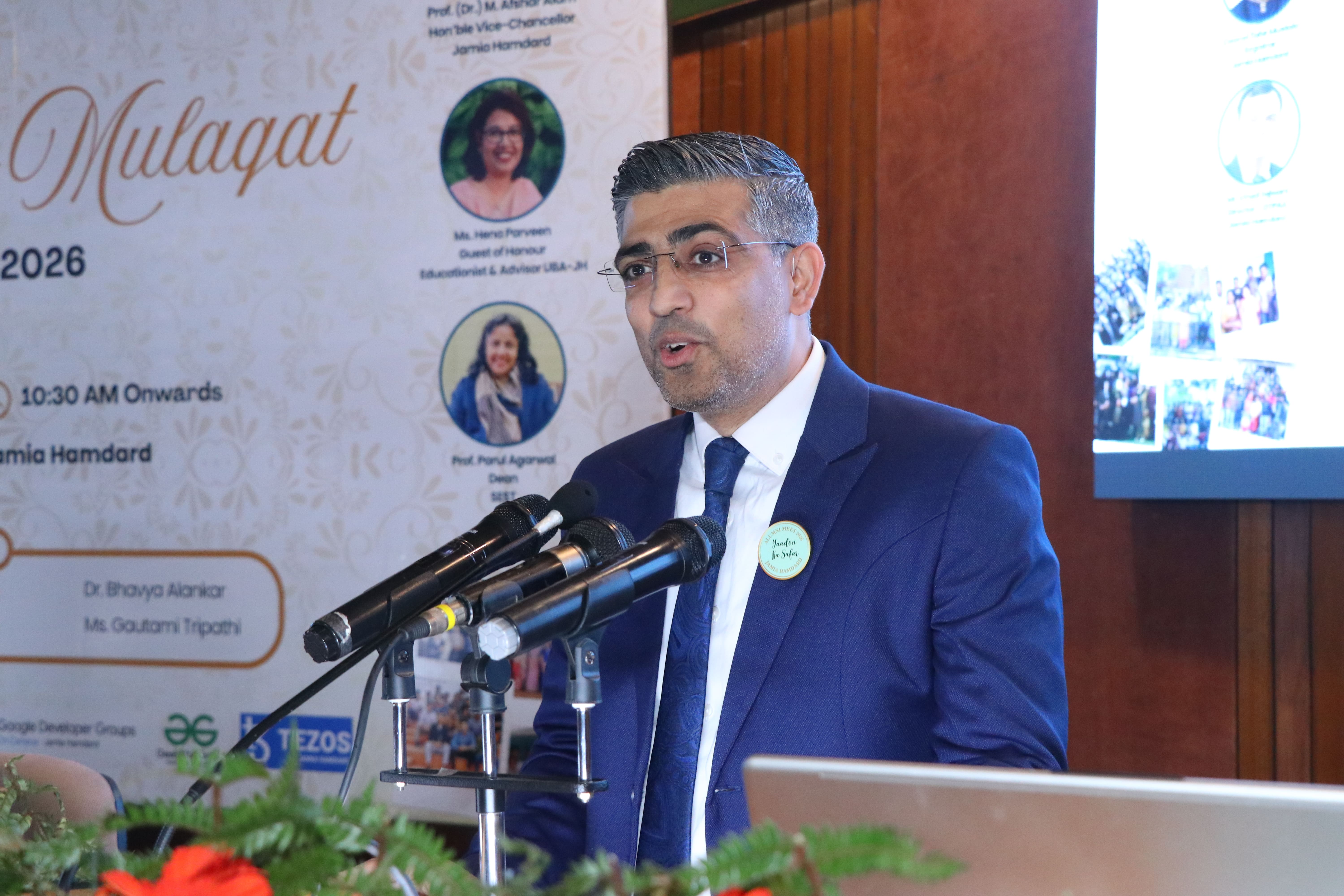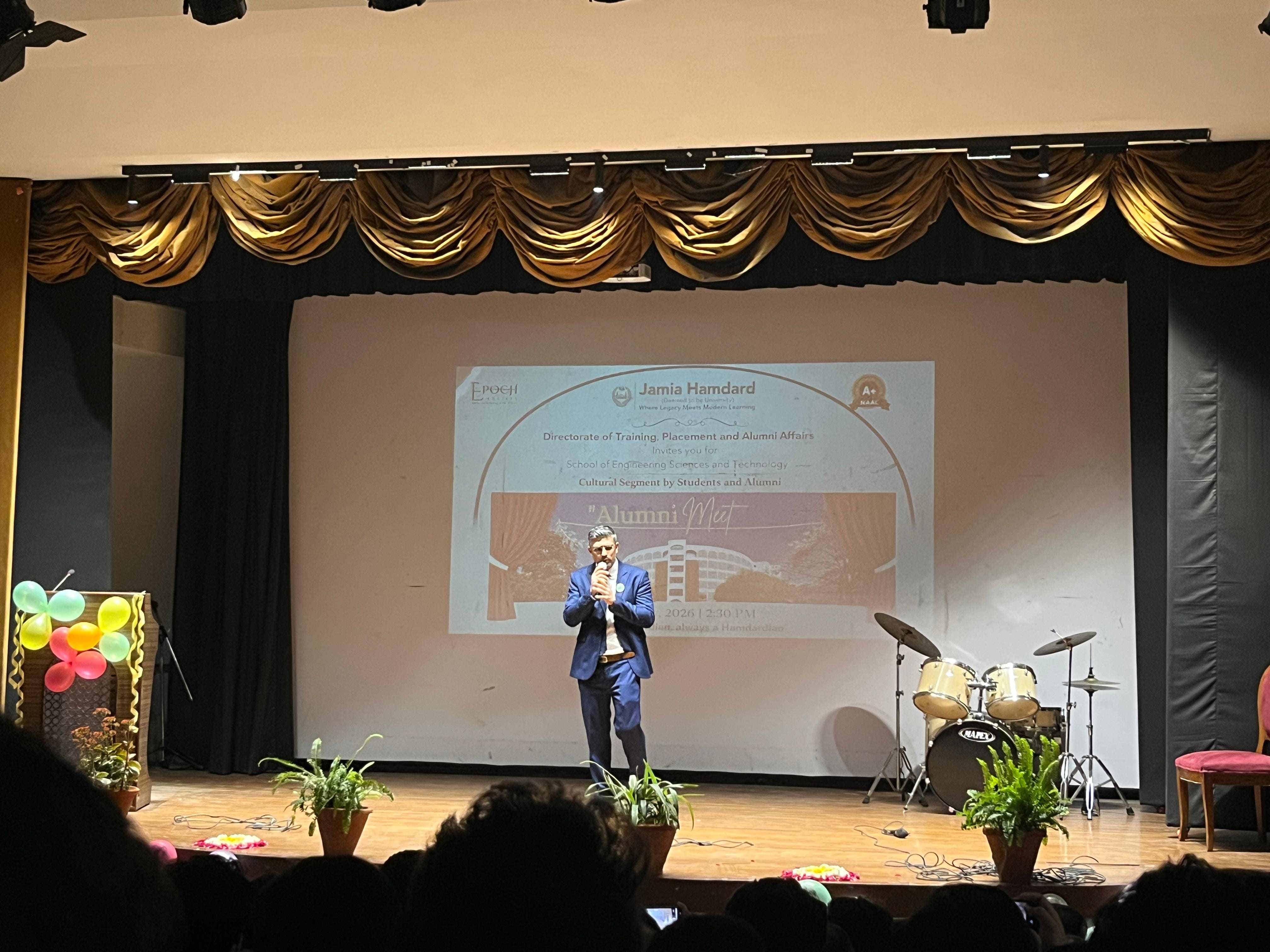 The Directorate of Training, Placement & Alumni Affairs (DTPAA) in association with School of Engineering Sciences and Technology (SEST), Jamia Hamdard, successfully conducted the Alumni Meet 2026 with the objective of strengthening institutional engagement with its alumni and enhancing collaborative opportunities across academic, industry, and research domains. The meet witnessed enthusiastic participation from alumni, faculty, and students, reaffirming the DTPAA’s commitment to nurturing long-term professional and social bonds. Approximately 150 alumni attended the event from across different professional backgrounds such as IT, Engineering, Cyber Security, AI , Entrepreneurship, Consulting, Public Sector, Healthcare Tech, etc. A key highlight of the inaugural program was the dedicated Alumni Experience- Sharing Session, where distinguished alumni spoke about their academic journeys, professional accomplishments, and the pivotal role Jamia Hamdard played in shaping their careers. The session featured diverse insights from their respective fields such as IT services, engineering & public sector. Their narratives not only inspired current students but also emphasized the importance of continuous learning, adaptability, and strong professional ethics.